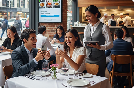 Presenta tu menú, imágenes cautivadoras y experiencias inolvidables en la parte frontal de la plataforma. Atrae a más clientes mostrando lo mejor de tu negocio y conviértelos en visitantes frecuentes.